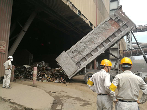 這樣的場(chǎng)景在幾個(gè)月前還是不存在的。寶鋼不銹的電爐過(guò)去一直是吃精料廢鋼的,而小李他們現(xiàn)在接收的這種剪切料廢鋼基本不用。寶鋼不銹一直習(xí)慣使用的精料廢鋼叫做“汽車(chē)切片”,其實(shí)就是汽車(chē)沖壓廠的邊角料經(jīng)過(guò)壓塊而成,成份穩(wěn)定,看上去銀光閃閃,整整齊齊,煉鋼現(xiàn)場(chǎng)進(jìn)料方便,質(zhì)量也比較放心。而現(xiàn)在使用的剪切料廢鋼與之相比明顯就是“粗糧”了。它是由各種各樣的廢鋼剪切加工而成,電爐“吃”起來(lái)也比較麻煩。